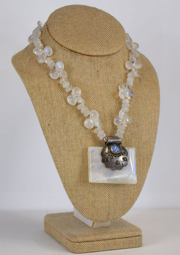 Rainbow Moonstone Gemstone Necklace With Rainbow Moonstone Gemstone Pendant